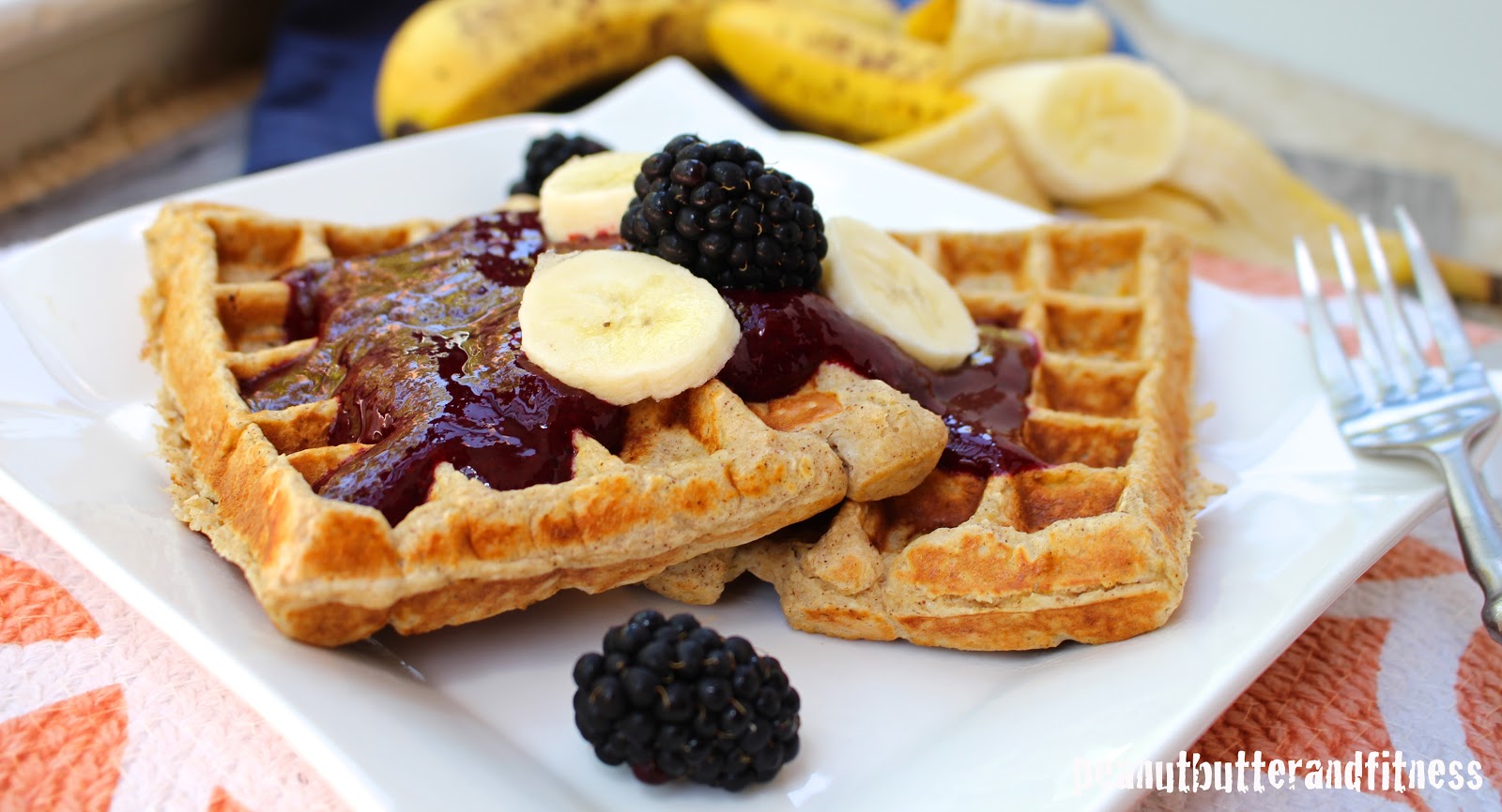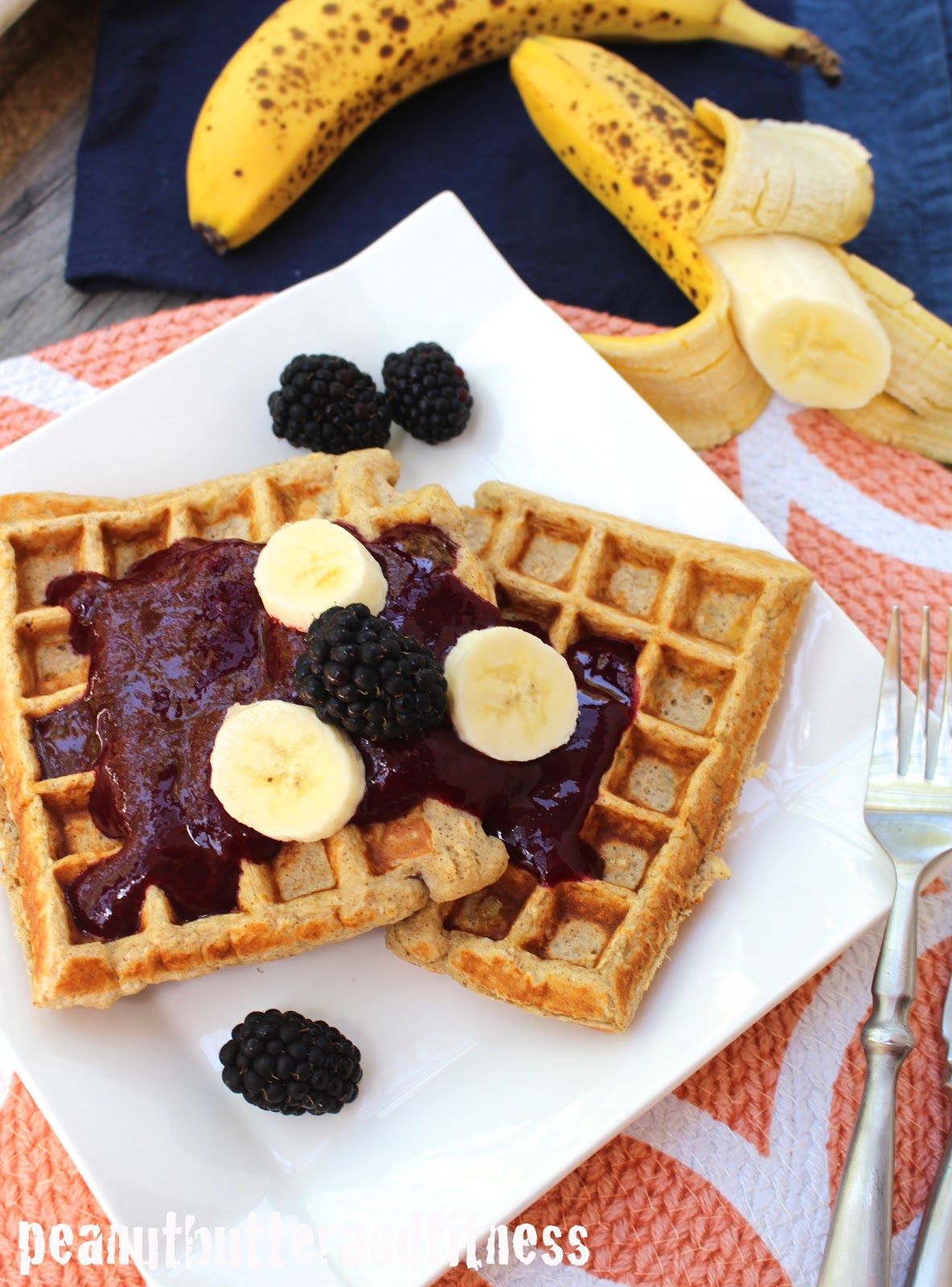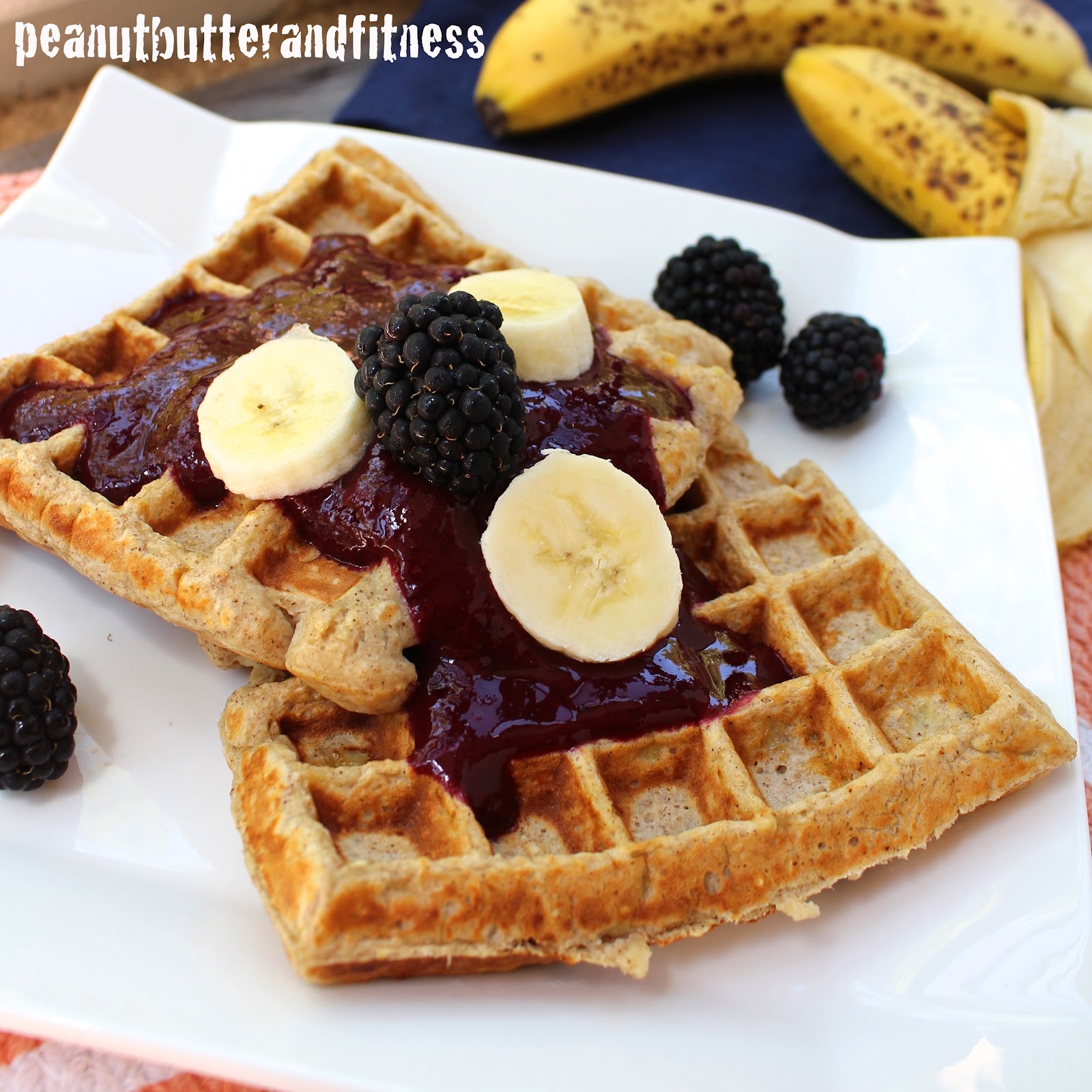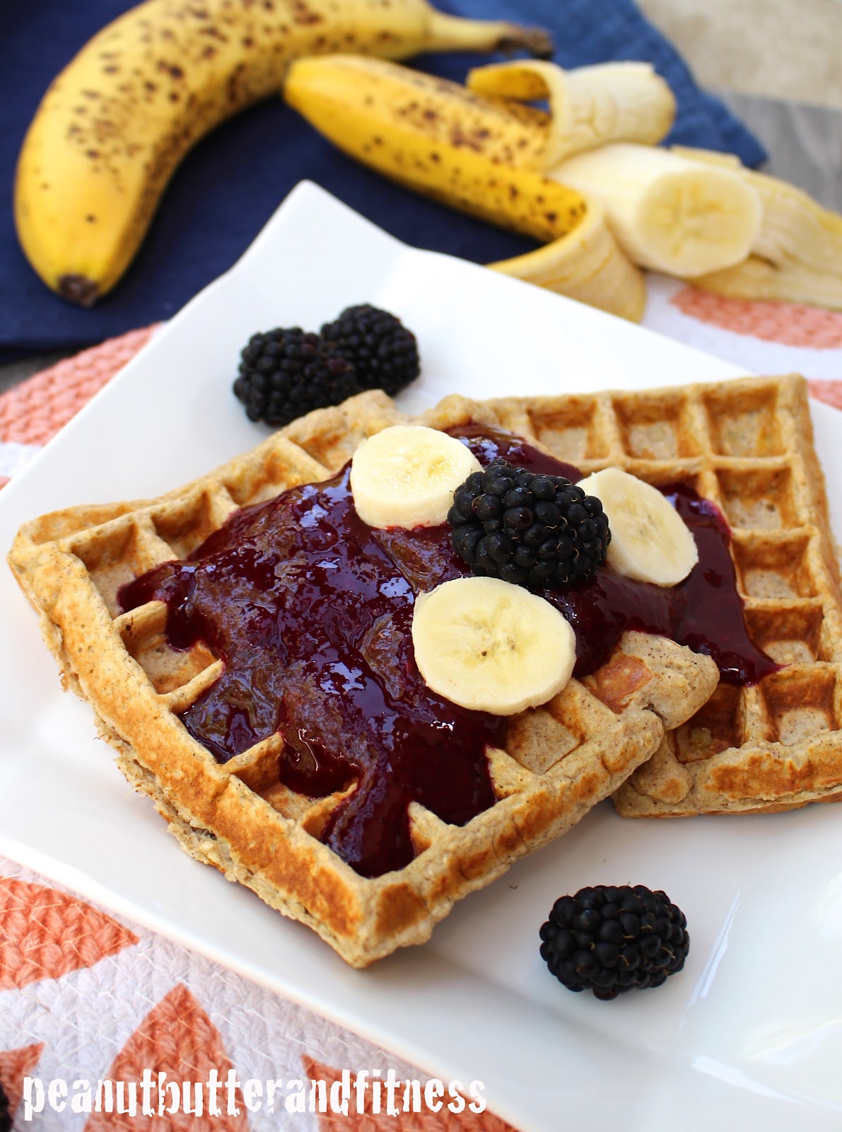Banana Protein Waffles with Blackberry Sauce