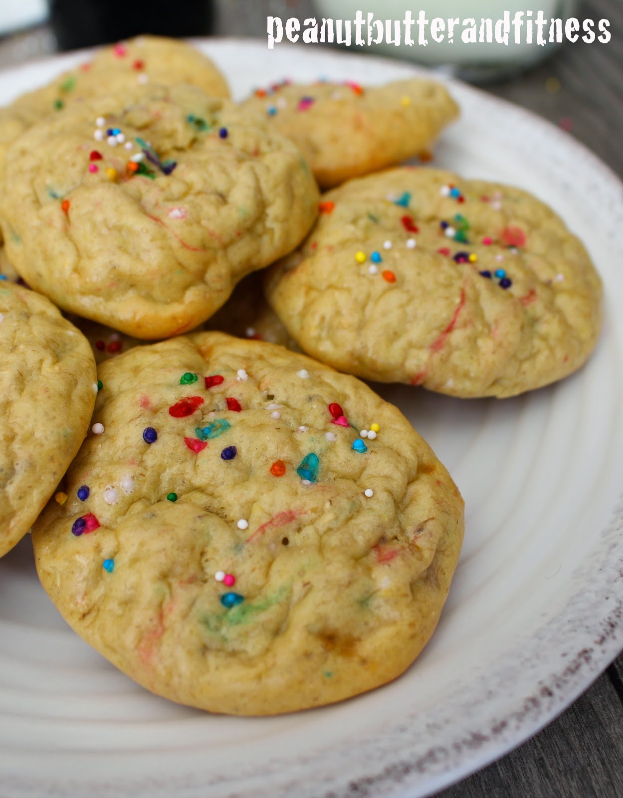 I think they look good with some extra sprinkles on top. You can add more in the batter too if you want. These aren’t super sweet, so if you’re into really sweet cookies, add a few packets of Truvia in there. Add some milk on the side and you’ll be golden 🙂