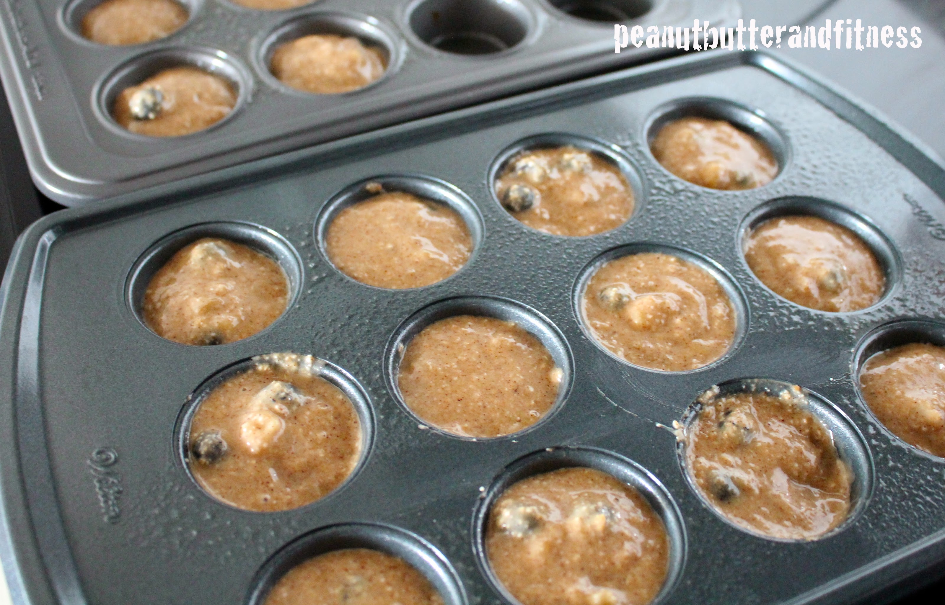 - Spray mini-muffin tins with non-stick cooking spray. Spoon muffin mix into muffin tin and bake for 13-15 minutes at 350 degrees or until a toothpick inserted in the center of a muffin comes out clean.