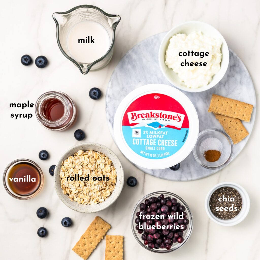 Here’s what you’ll need to recreate these Blueberry Cottage Cheese Overnight Oats: