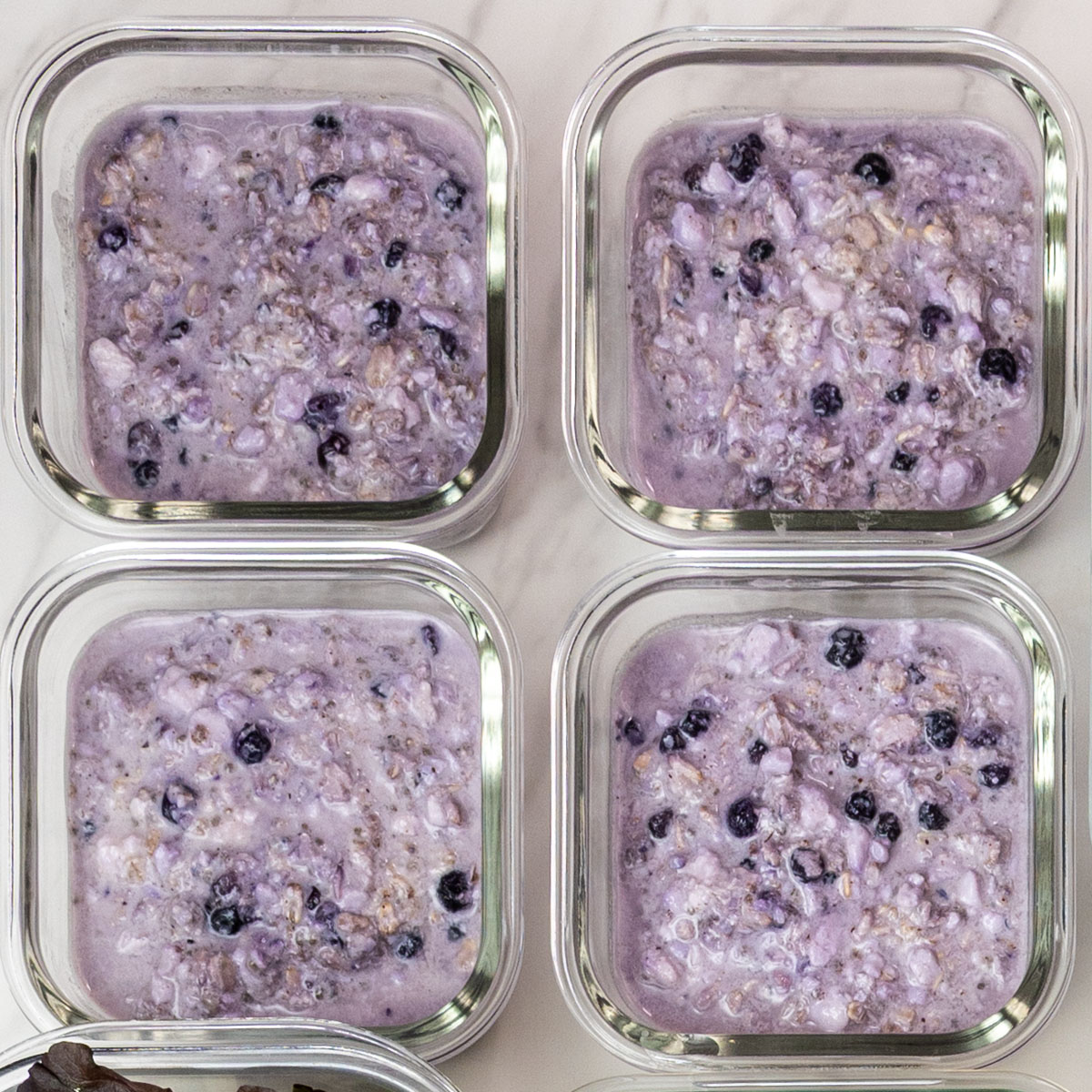 - Divide all ingredients except blueberries between 2 jars or airtight containers and mix until combined. Set aside.