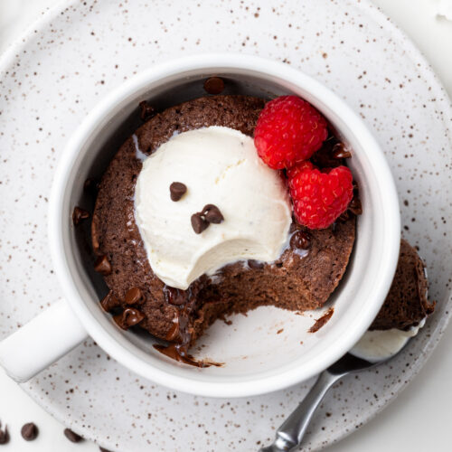 - Applesauce – Lends volume and moisture to the mug cakes without adding fat. I haven’t tried using Greek yogurt as a substitute for the applesauce, but it might work, though the texture could get weird after freezing.