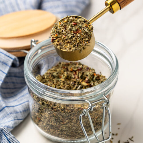 Sure, you could buy an Italian Seasoning blend at the store, but the flavors aren’t always exactly what you need for a recipe. Making your own at home can also be way more budget friendly than buying it pre-mixed. Use this recipe as a guide to make your own seasoning at home, then use it in your favorite Italian recipes like dressings, sauces, pastas, soups, and more!
