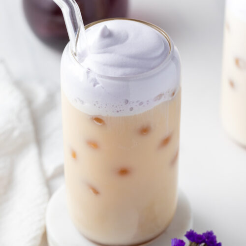 - Lavender Cream Cold Foam – Made with Lavender Simple Syrup, heavy cream, and 2% milk, this quick and easy cold foam whips up with a milk frother into a perfectly creamy but light foam that’s easy to drink.