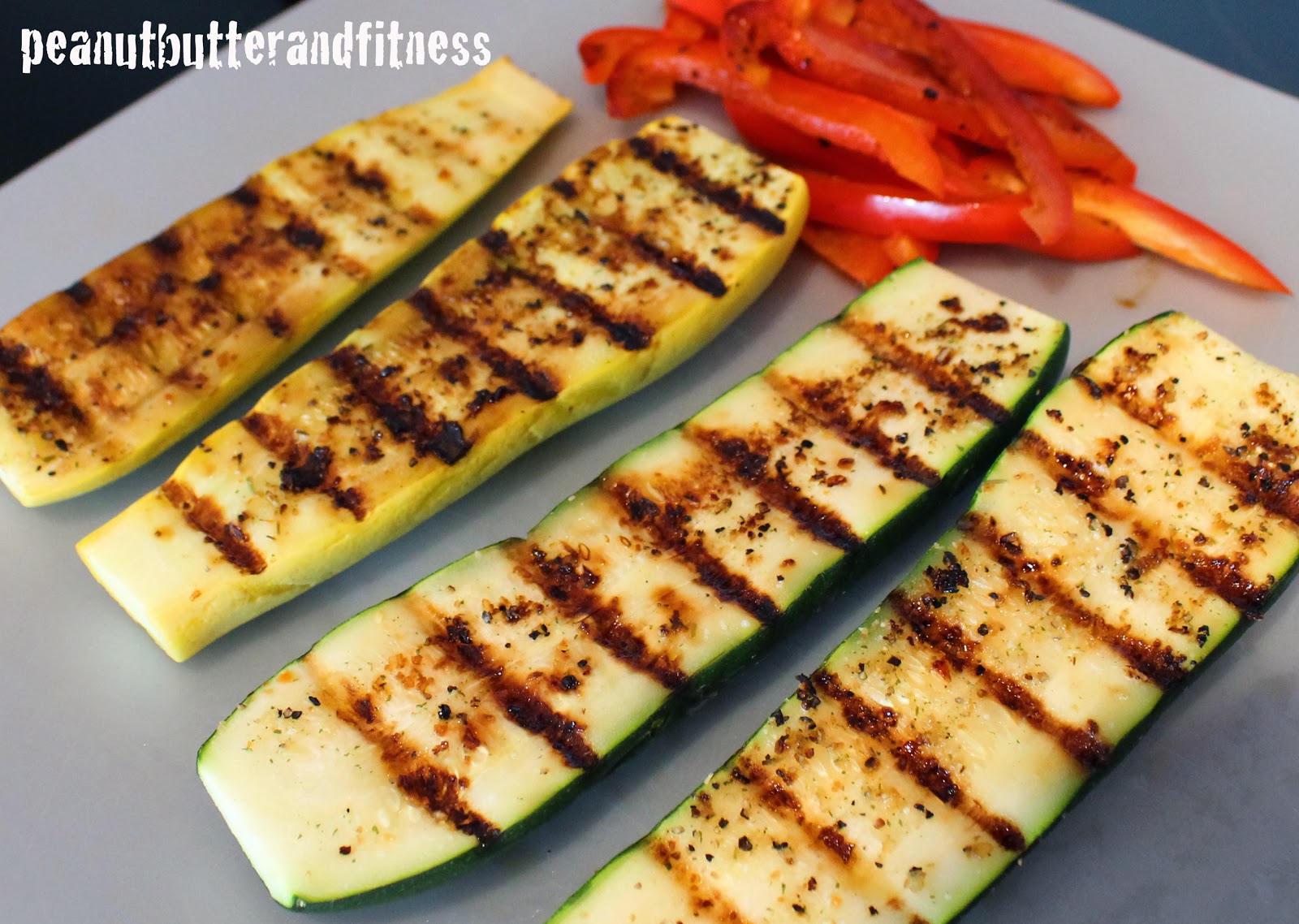 Then I grabbed some veggies to pair it up with. I just cut up some red bell pepper and cut a yellow squash and zucchini in half and sprinkled a little bit of Mrs. Dash on the cut side. I think I grilled them on my George Foreman for about 5 minutes.