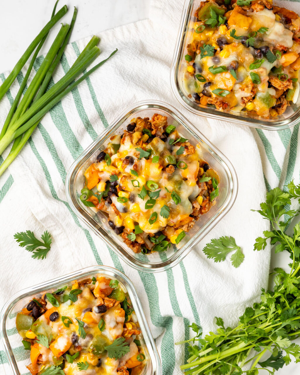 The flavors and textures here are reminiscent of chili considering all the ingredients at play – but I felt like this was lighter, brighter, and certainly less soupy. And definitely crave-worthy! This recipe started out as an experiment and I was honestly a little surprised with how much I loved it. That said, I don’t recommend skipping the cheese on top because you really need that creamy element to bring it all together. I thought the Tillamook Mexican 4 Cheese blend was a perfect match here, but of course you could use a lower fat shredded cheese option to make it a little lighter.