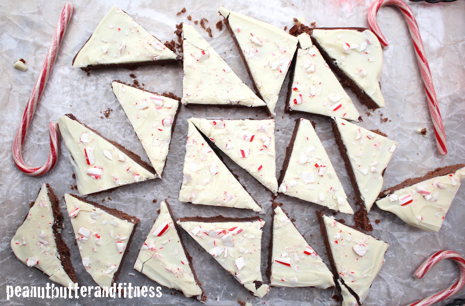 I cut these brownies into triangles because I think it’s fun and pretty, but fair warning: it’s a pain to do it with the peppermint bark on top. Some of the corners broke off, so if you want to keep it simple (and probably clean cut), just go for squares!I used a 9×9 inch baking pan for my brownies but if you like them a little thicker, go for an 8×8 pan.
