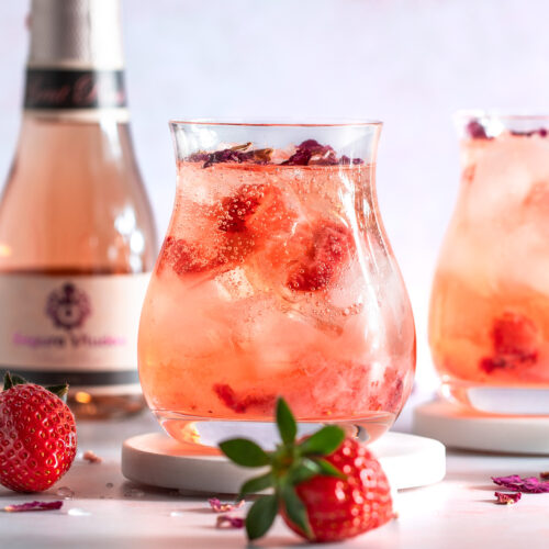 What I love about this drink is that it’s crisp and floral, but with a nice level of sweetness from the strawberries and simple syrup to balance things out. And when you’re celebrating with your besties on Galentine’s Day, that’s exactly the energy you need! Plus…rosé all day? Hi, yes, I’m in. Cheers!