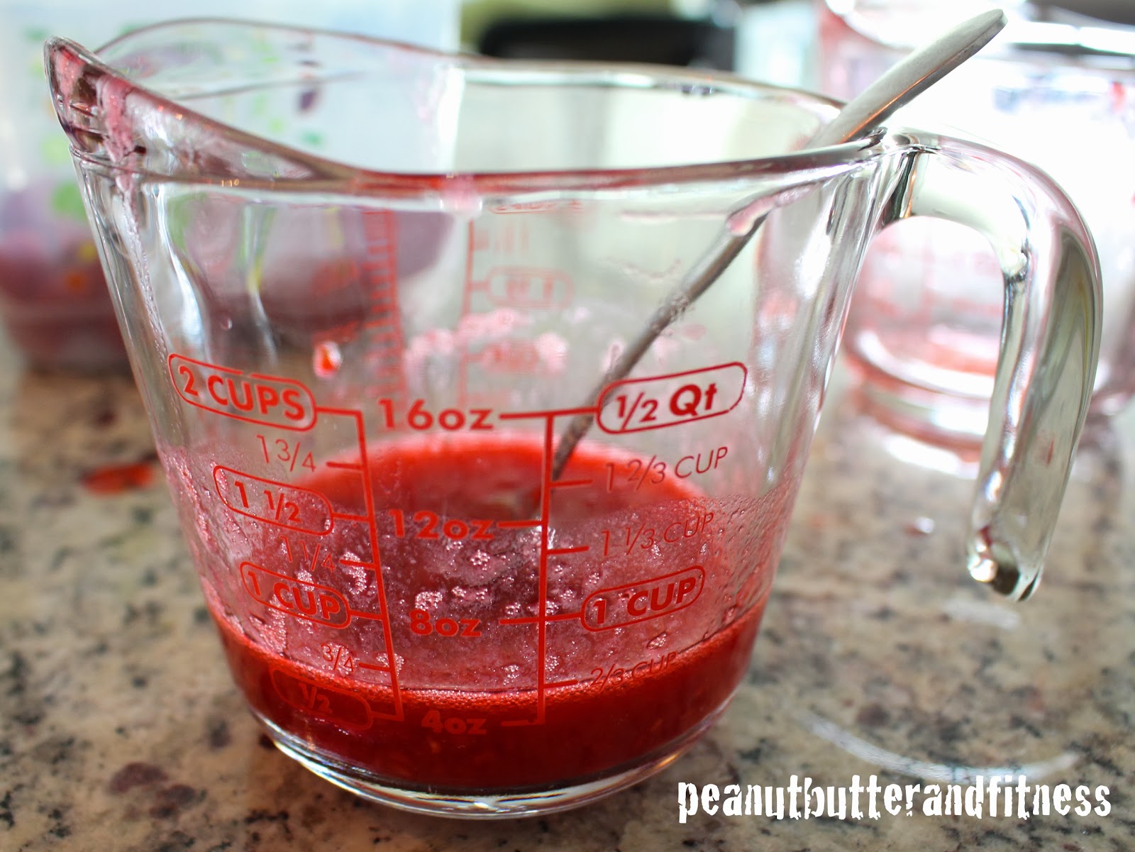 The raspberry in this recipe is the perfect compliment to the creaminess of the coconut and yogurt. I strained out about half the seeds from the raspberries that I mashed up, you could take out more or leave them all in. I personally am not a huge fan of how MANY seeds there are in raspberries but I wanted to keep some of the thickness they provide to the mash. I ended up with a little over half a cup of mashed up raspberries after mashing and straining one and a half cups of fresh ones.