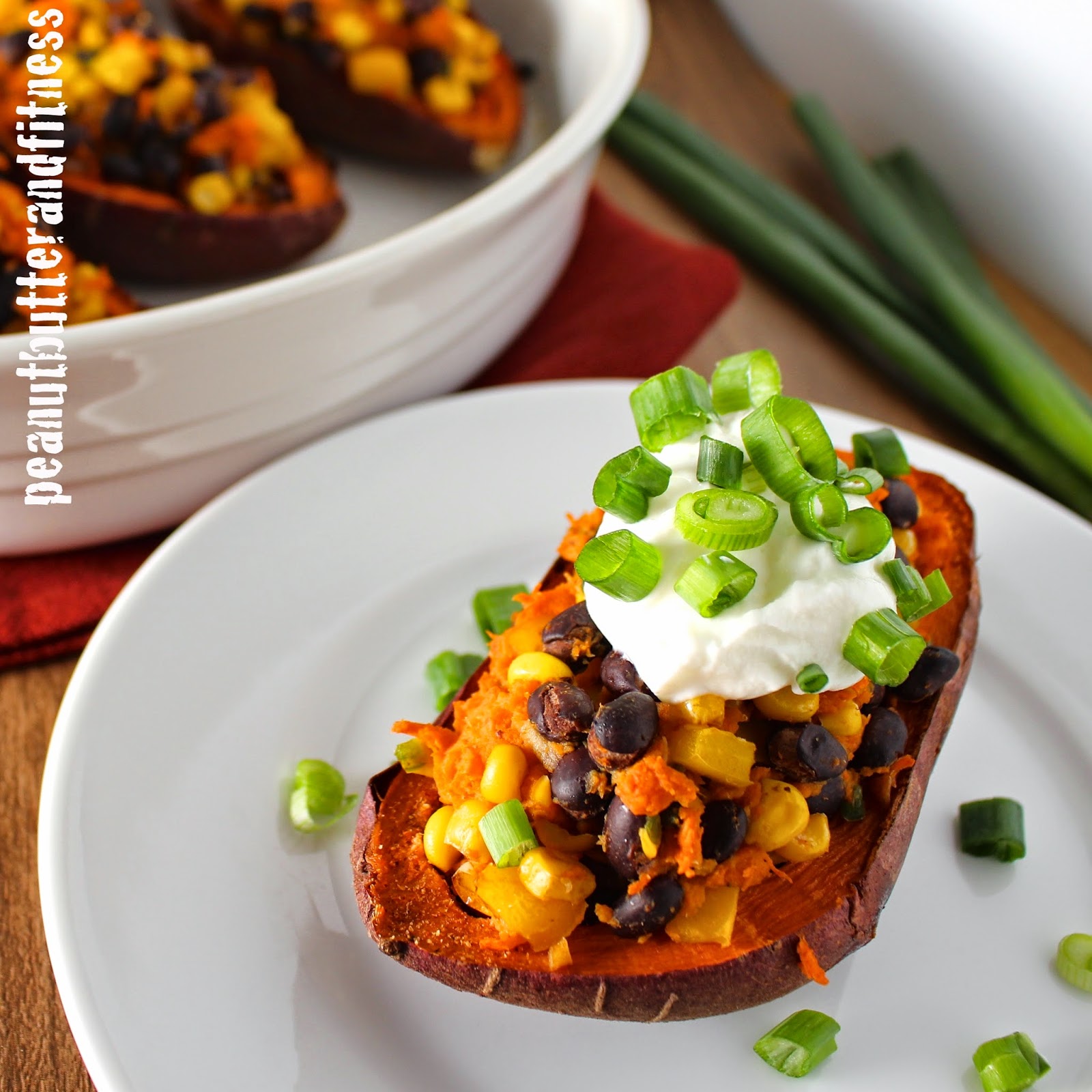 You only need to keep about 2/3 of the flesh that you scooped out in order to refill your sweet potatoes, but I just kept all of it in the filling mix so I ended up with some extra to use as part of a meal. Anywho…top it all off with some plain Greek yogurt and green onions. Enjoy!Servings: 4 • Calories: 195 • Fat: 1 g • Protein: 9 g • Carbs: 40 g • Fiber: 8 g • Sugar: 9 g • Sodium: 232 mg • Cholesterol: 1 mg