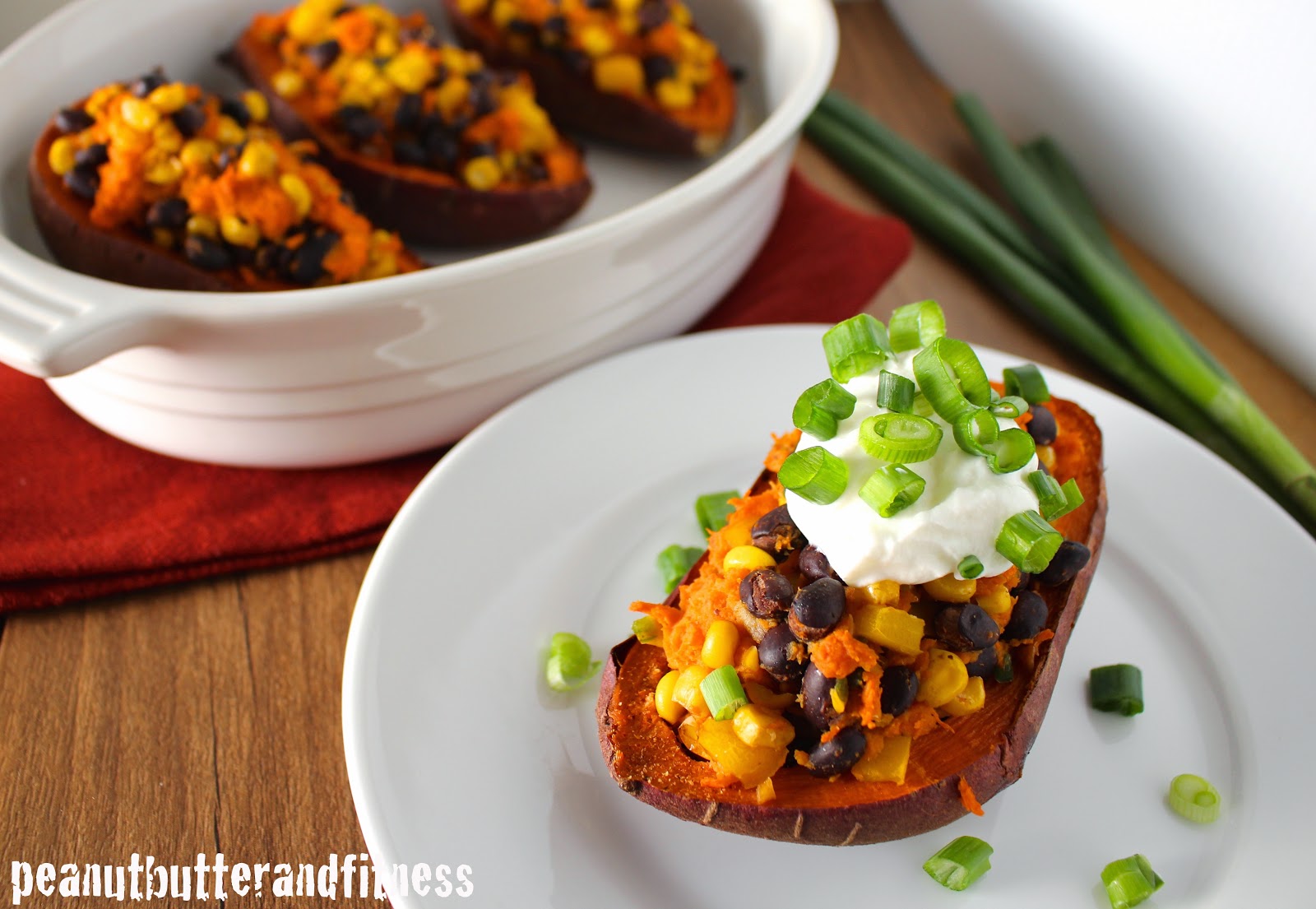 - Add corn mixture and black beans to mashed sweet potato and mix. Spoon into sweet potato skins and broil for 4-5 minutes.