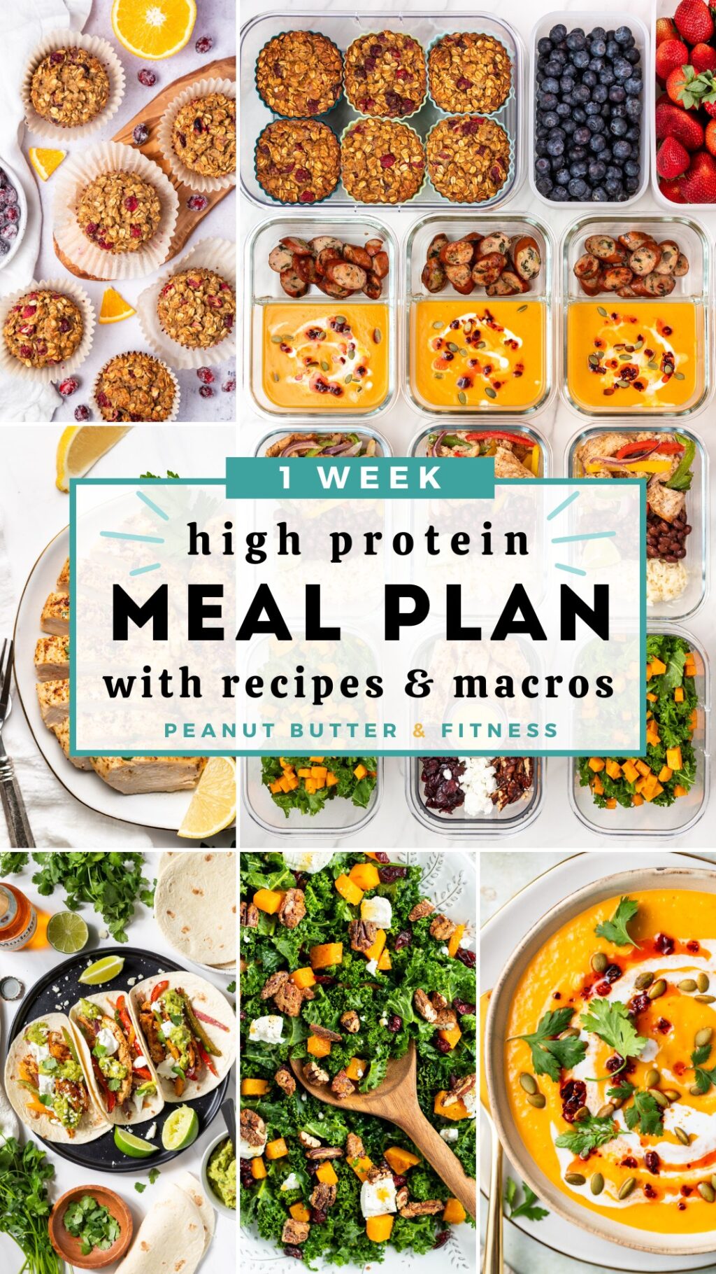 | Day 6 | Dairy Free Cranberry Orange Oatmeal Muffins | Roasted Pumpkin Curry Soup with chicken sausage | Sheet Pan Chicken Fajitas with chili beans and rice |