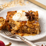 Bake at 350°F for 40-45 minutes or until no longer very soft to the touch in the center. Serve with maple syrup and whipped cream, if desired.
